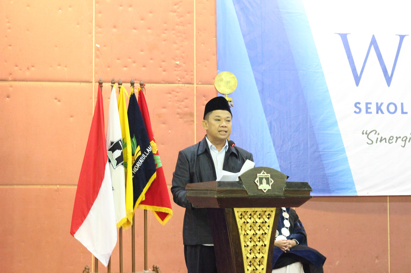 Tampak juga jajaran pengurus yayasan Pondok Pesantren Hidayatullah Depok, Ketua Senat STIE Hidayatullah Depok Dr. Dudung Amadung Abdullah, M.H., Ketua STIE Hidayatullah Depok Muhammad Saddam, M.Ak, para dosen dan staff akademik serta seluruh dan cipitas akademika STIE Hidayatullah Depok.