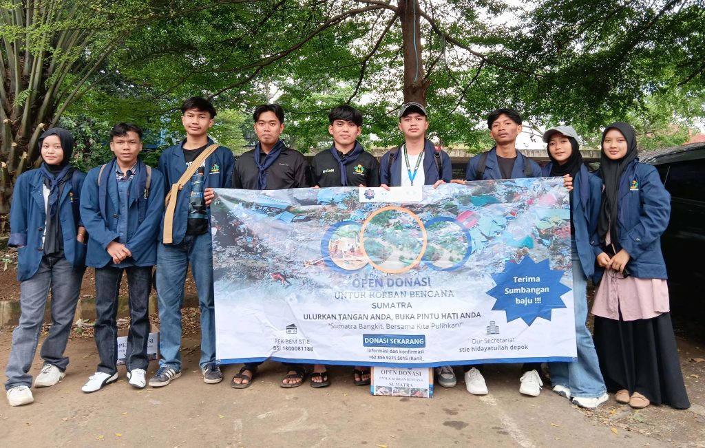 Sekolah Tinggi Ilmu Ekonomi (STIE) Hidayatullah bersama Badan Eksekutif Mahasiswa (BEM) melaksanakan penggalangan dana untuk masyarakat Sumatera pada 8–12 Desember 2025. Kegiatan ini dilakukan di wilayah sekitar Bogor dan Depok sebagai bentuk solidaritas kemanusiaan terhadap masyarakat yang membutuhkan.